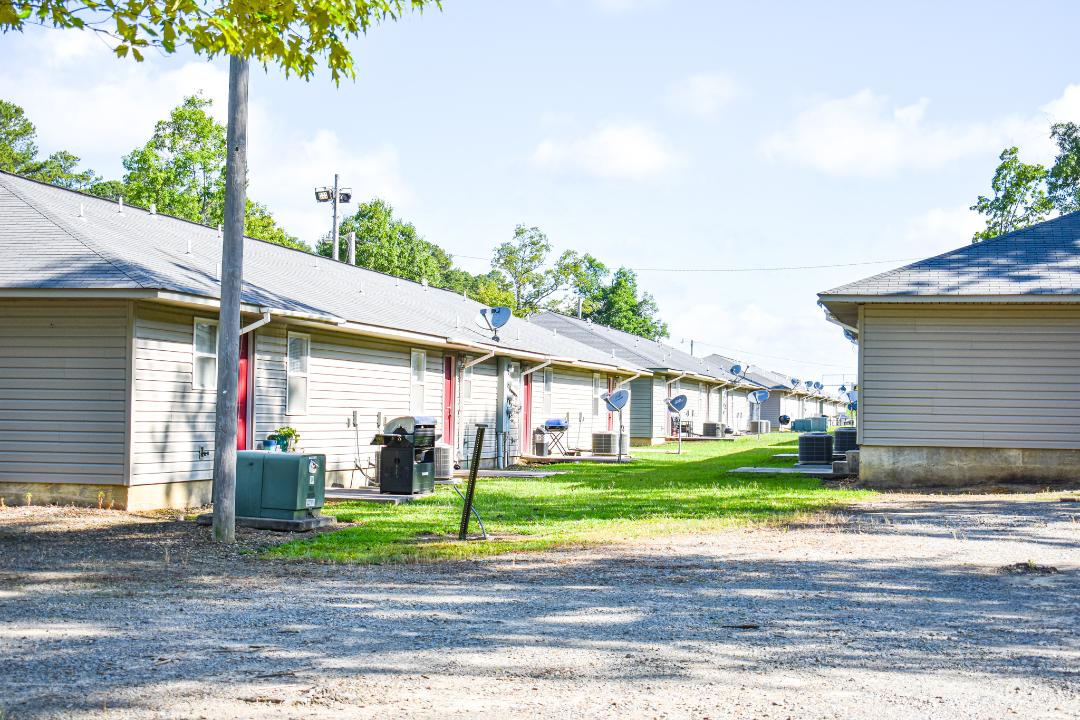 Each apartment has two bedrooms and one bathroom.
